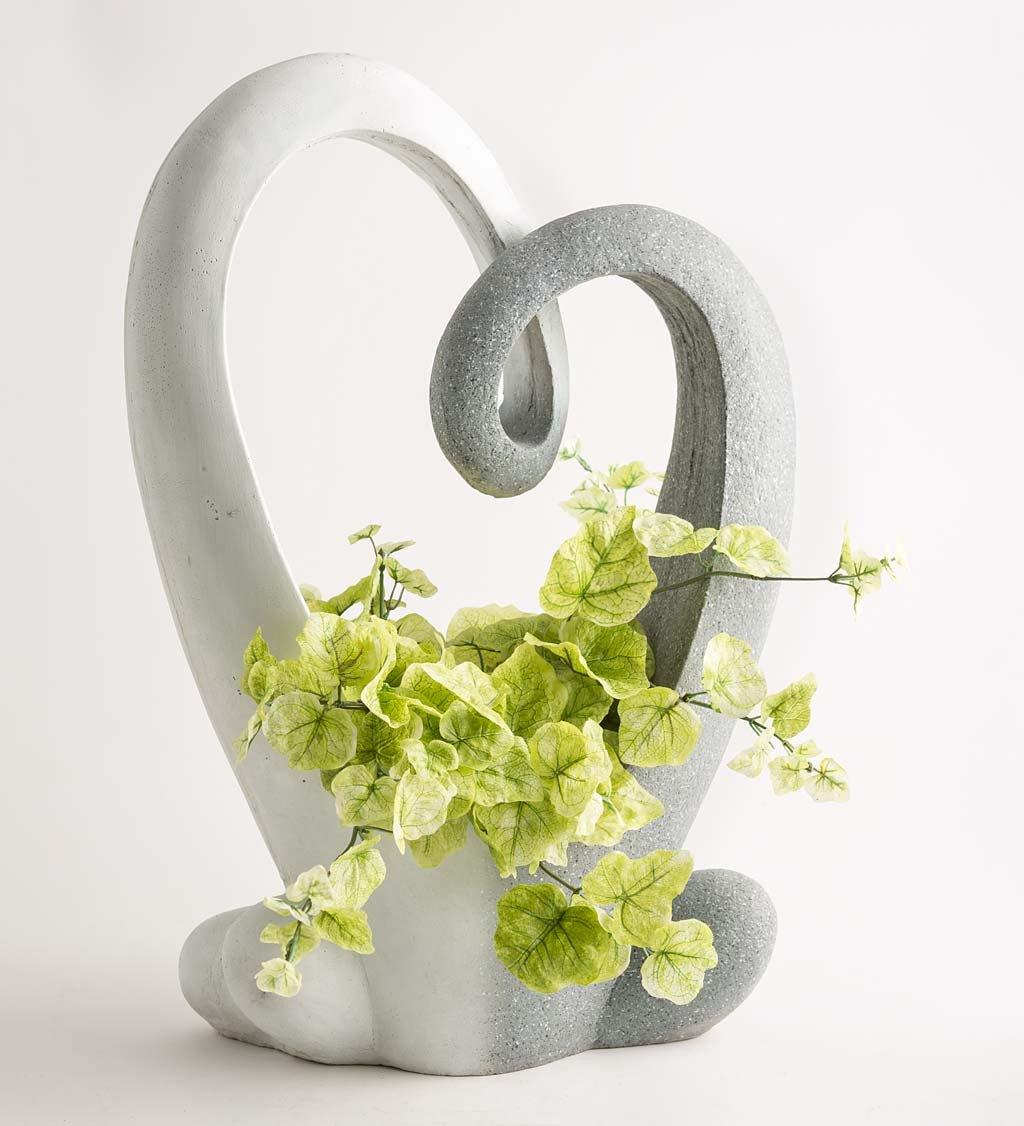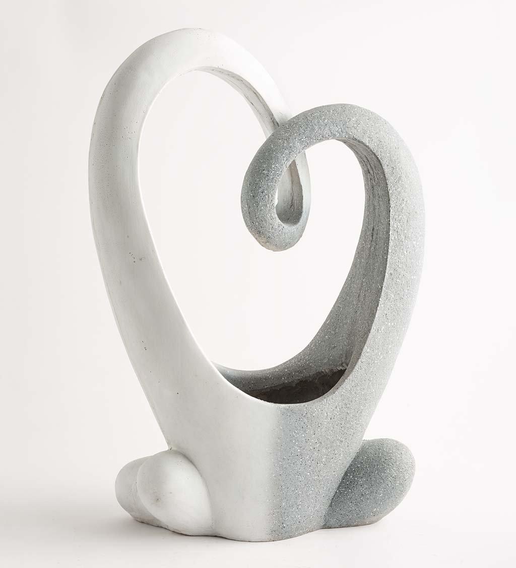 The whole team was mesmerized by this unique Two-Tone Abstract Heart Planter. Designed for use outdoors with a drainage hole in the bottom. The unique heart shape includes an overlapping loop that suggests the happy coupling of the two halves.