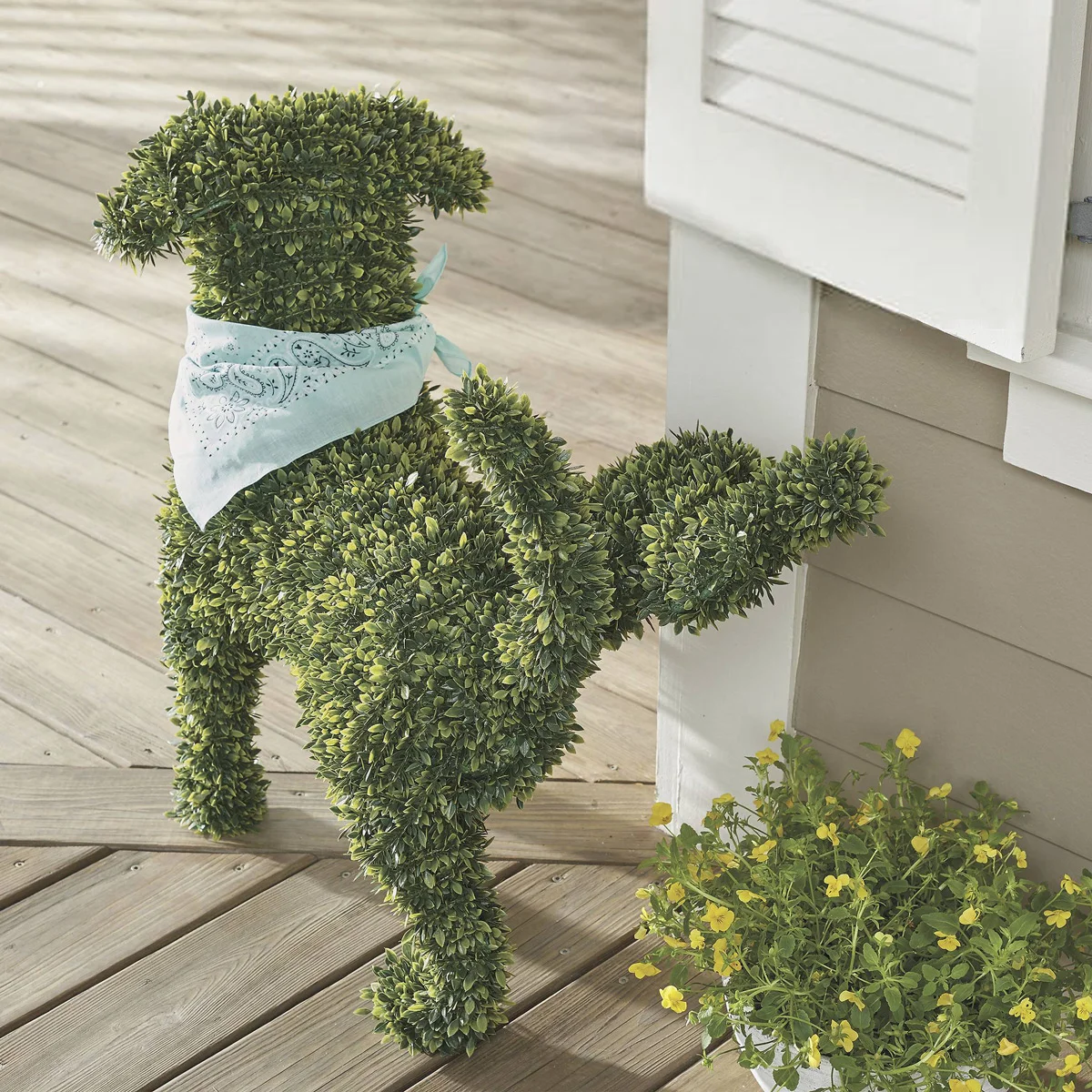 Let's face it, the tacky lawn ornaments, annoying garden gnomes, unfashionable concrete geese, and utterly boring traditional topiaries just aren't getting the conversation started around your home anymore, but this cool Faux Boxwood Garden Dog should ensure at least a few double takes.